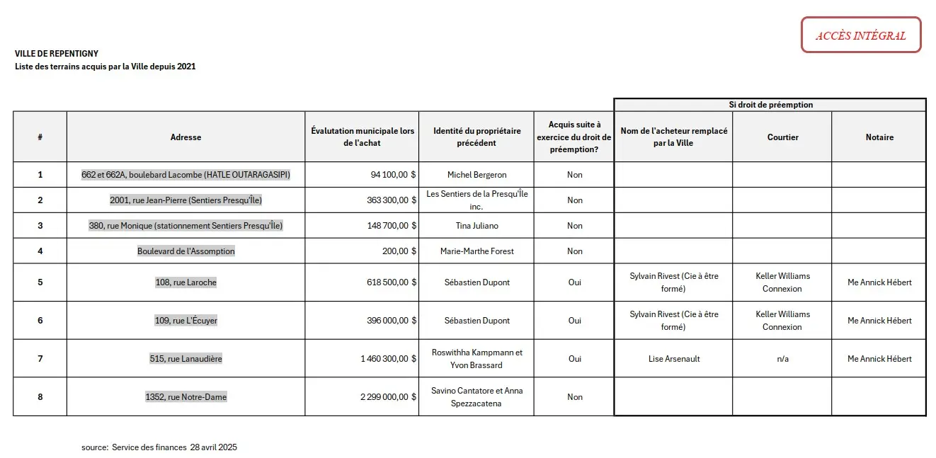 - Achats des terrains/propriétés locatifs et d’espaces commerciaux en valeur de dizaines de millions $, plus que la valeur foncière établie, sans évaluateurs externes payés par la ville, mais plutôt par les vendeurs et, le tout, sans appel d’offre